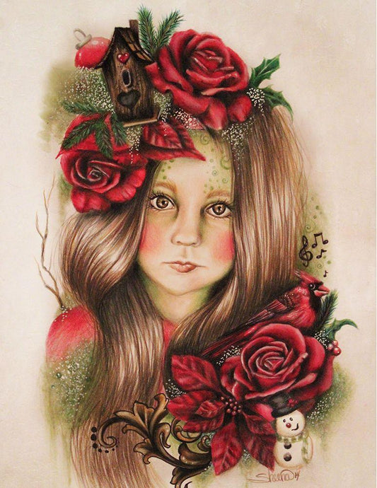 Merry - Christmas Pixie Blossoms Black Ornate Wood Framed Art Print with Double Matting by Sheena Pike Art