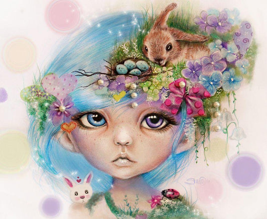 Eliza Easter Elf - MunchkinZ Elf Black Ornate Wood Framed Art Print with Double Matting by Sheena Pike Art