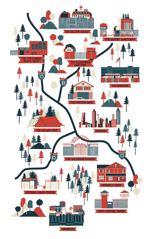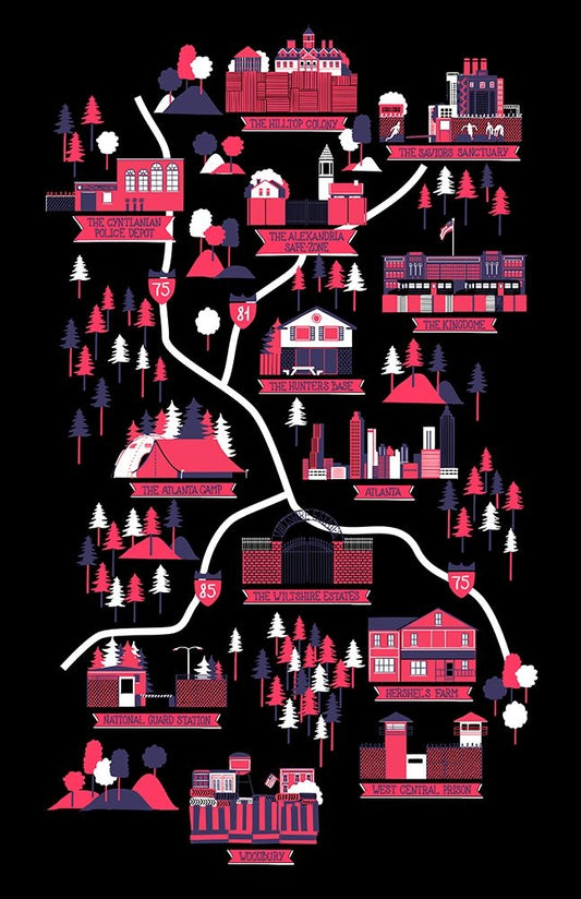 The Walking Dead Map Verb Black Ornate Wood Framed Art Print with Double Matting by Farkas, Robert
