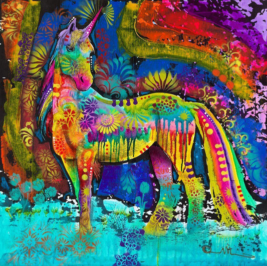 Rainbow Unicorn Black Ornate Wood Framed Art Print with Double Matting by Dean Russo Collection