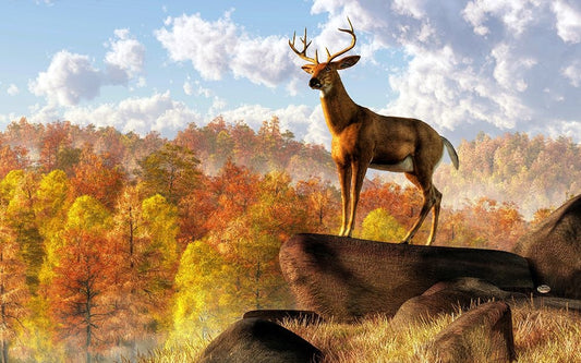 Buck Over Autumn Valley Black Ornate Wood Framed Art Print with Double Matting by Eskridge, Daniel