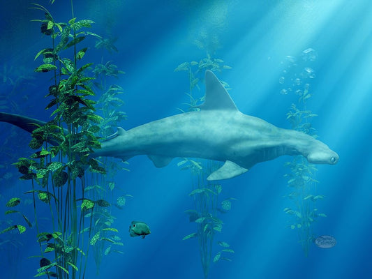 Hammer Head Among The Seaweed Black Ornate Wood Framed Art Print with Double Matting by Eskridge, Daniel