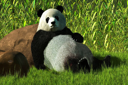 Reclining Panda Black Ornate Wood Framed Art Print with Double Matting by Eskridge, Daniel