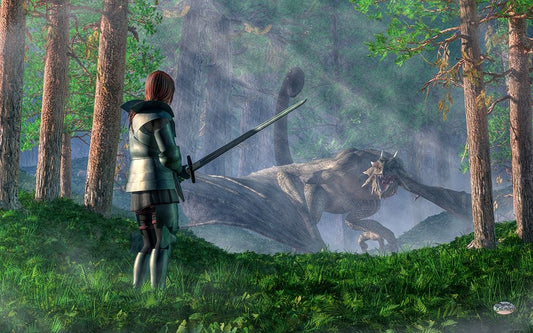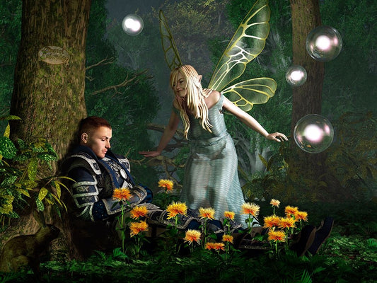 The Knight And The Faerie Black Ornate Wood Framed Art Print with Double Matting by Eskridge, Daniel