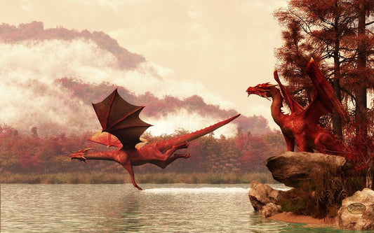Autumn Dragons Black Ornate Wood Framed Art Print with Double Matting by Eskridge, Daniel
