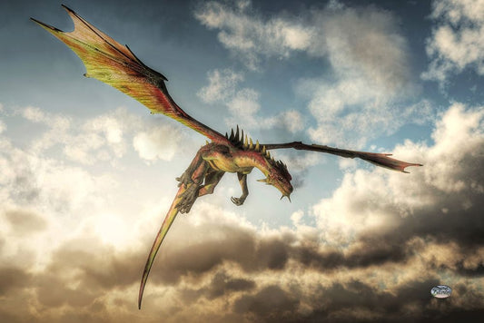 Flying Dragon Death From Above Black Ornate Wood Framed Art Print with Double Matting by Eskridge, Daniel