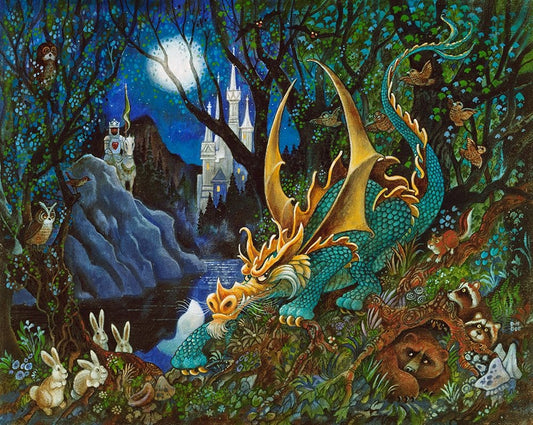 Moon Dragon Black Ornate Wood Framed Art Print with Double Matting by Bell, Bill