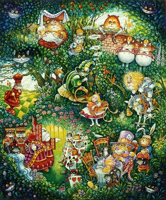Alice In Pussycat Land Black Ornate Wood Framed Art Print with Double Matting by Bell, Bill