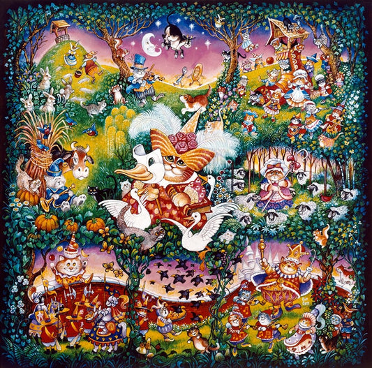 Mother Goose Black Ornate Wood Framed Art Print with Double Matting by Bell, Bill