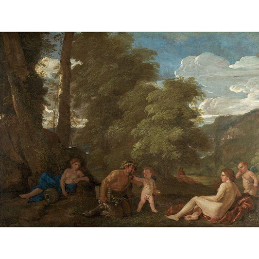 Nymphs and a Satyr Black Modern Wood Framed Art Print with Double Matting by Poussin, Nicolas