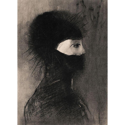 Strange Flower (Little Sister of the Poor) Black Modern Wood Framed Art Print with Double Matting by Redon, Odilon
