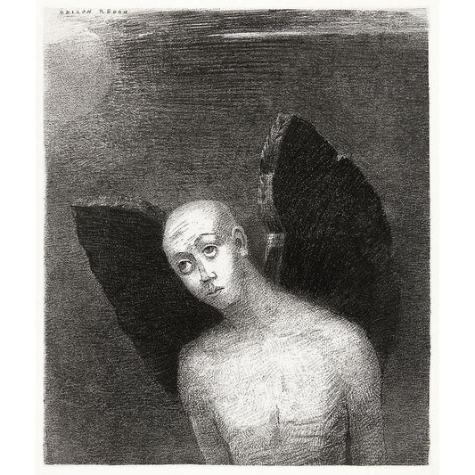 The Fallen Angel Spreads His Black Wings Black Modern Wood Framed Art Print with Double Matting by Redon, Odilon