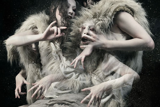 Wolf Daughters White Modern Wood Framed Art Print with Double Matting by Murakami, Kiyo