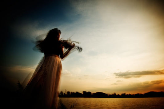Sweet Violin White Modern Wood Framed Art Print with Double Matting by Vidis, Sorin