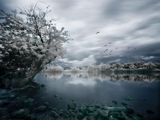 Migration White Modern Wood Framed Art Print with Double Matting by David Senechal Photographie