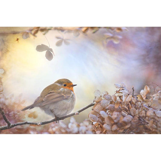 Robin On Dreams Black Modern Wood Framed Art Print with Double Matting by Teuni