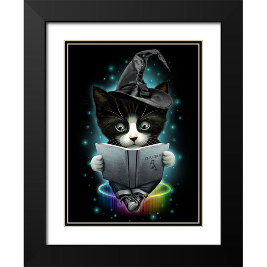 Magical Cat Black Modern Wood Framed Art Print with Double Matting by Lawless, Adam