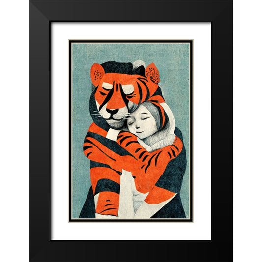 My Tiger And Me Black Modern Wood Framed Art Print with Double Matting by Treechild