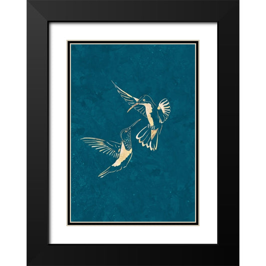Gold Hummingbird Line art Silhouettes 2 Black Modern Wood Framed Art Print with Double Matting by Manovski, Sarah