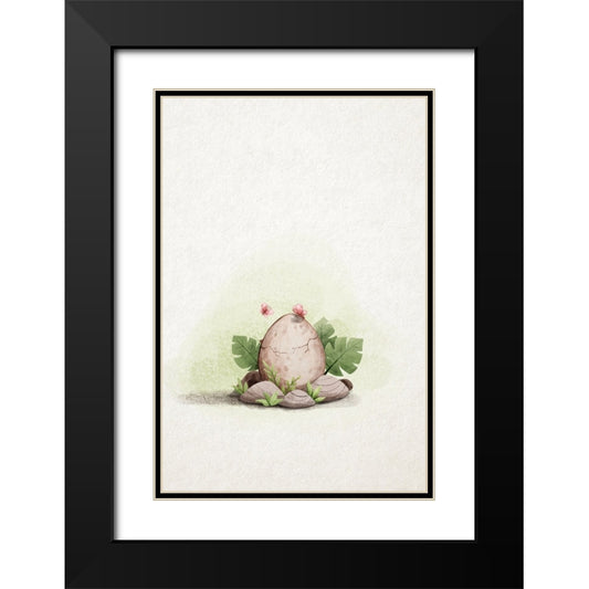 Kawaii Dinosaur Black Modern Wood Framed Art Print with Double Matting by Thai, Xuan