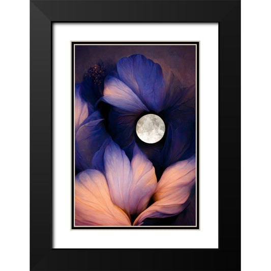 The Moon Flowers Black Modern Wood Framed Art Print with Double Matting by Treechild