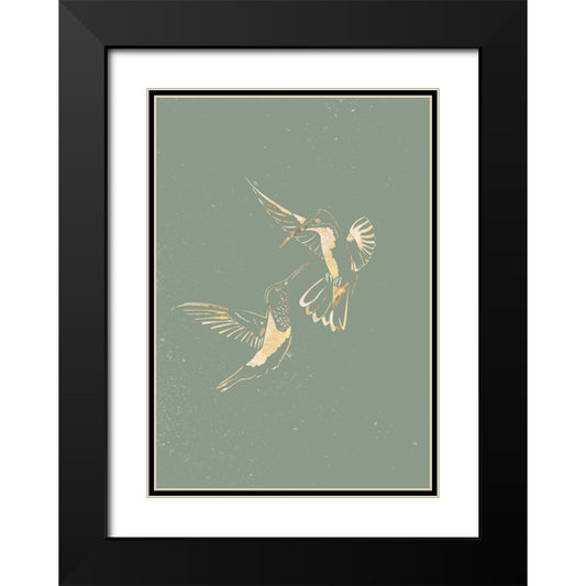 Sage Green Gold Hummingbirds Black Modern Wood Framed Art Print with Double Matting by Manovski, Sarah