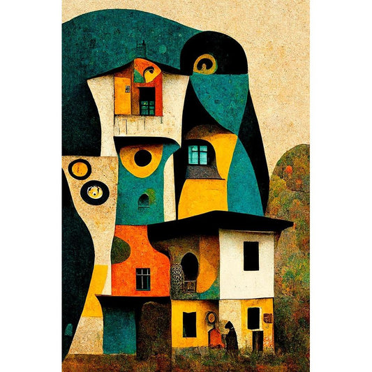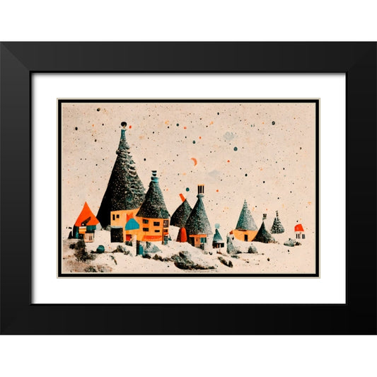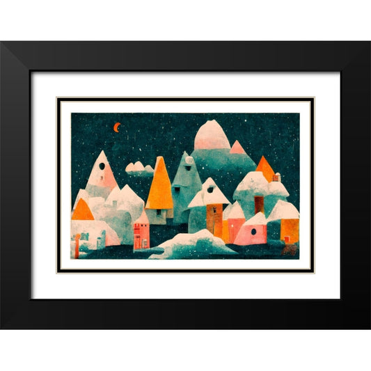 Little Village With Moon Black Modern Wood Framed Art Print with Double Matting by Treechild