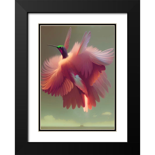 Humming Bird with Pink Wings Black Modern Wood Framed Art Print with Double Matting by Day, Ruth