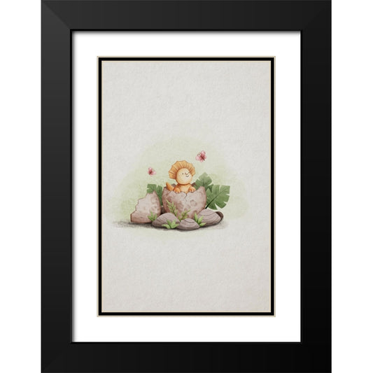 Kawaii Dinosaur Black Modern Wood Framed Art Print with Double Matting by Thai, Xuan