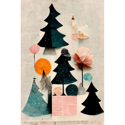 Cute Pine Tree Composition Black Modern Wood Framed Art Print with Double Matting by Treechild