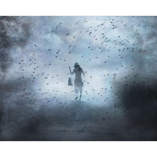 Girl And Bird Black Modern Wood Framed Art Print with Double Matting by Lammakmak