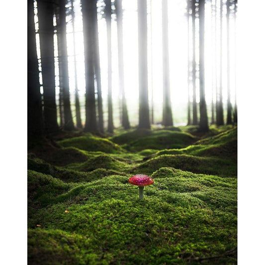Red Mushroom In The Green Forest Black Modern Wood Framed Art Print with Double Matting by Lindsten, Christian