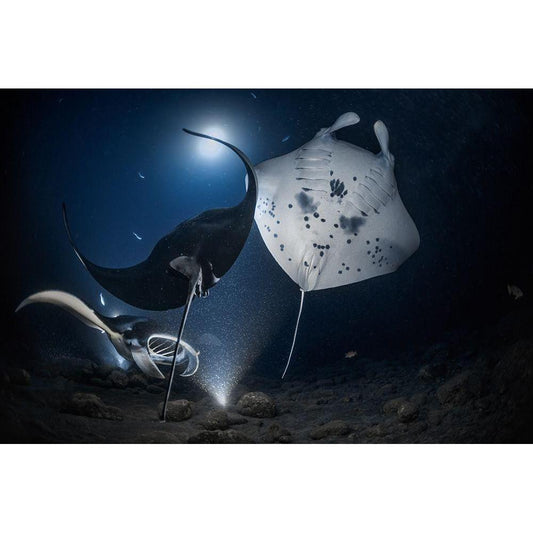 Mantas Night Out Black Modern Wood Framed Art Print with Double Matting by Lu, Jennifer