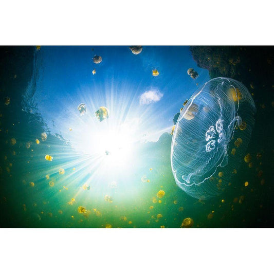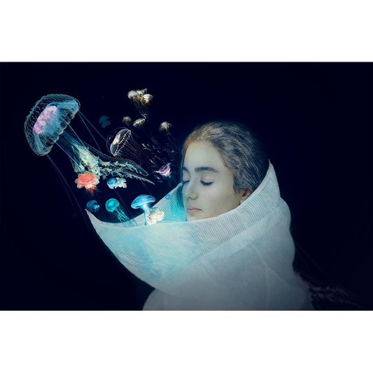 Jellyfish - The Queen Of The Sea Black Modern Wood Framed Art Print with Double Matting by Bagheri, Parsa