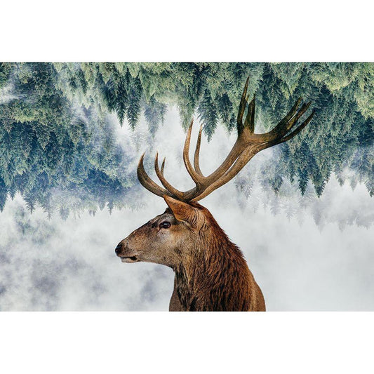 The Deer And The Woods Black Modern Wood Framed Art Print with Double Matting by Beata, Angyalosi