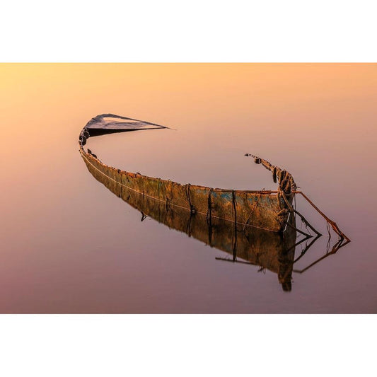 Sailing Across The Lake Toward The Sunset Black Modern Wood Framed Art Print with Double Matting by Hamiti, Bess