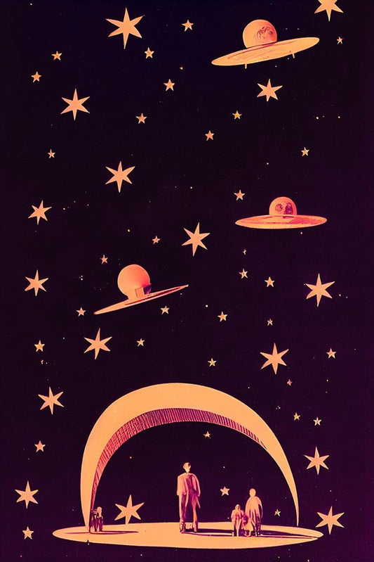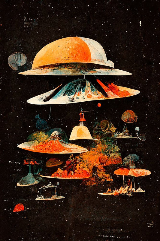 Flying Saucers White Modern Wood Framed Art Print with Double Matting by Treechild