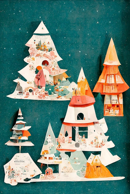 A Paper Village At Night White Modern Wood Framed Art Print with Double Matting by Treechild