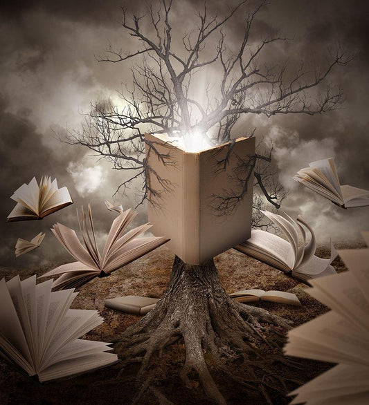 Old Tree Reading Story Book White Modern Wood Framed Art Print with Double Matting by Waye, Angela