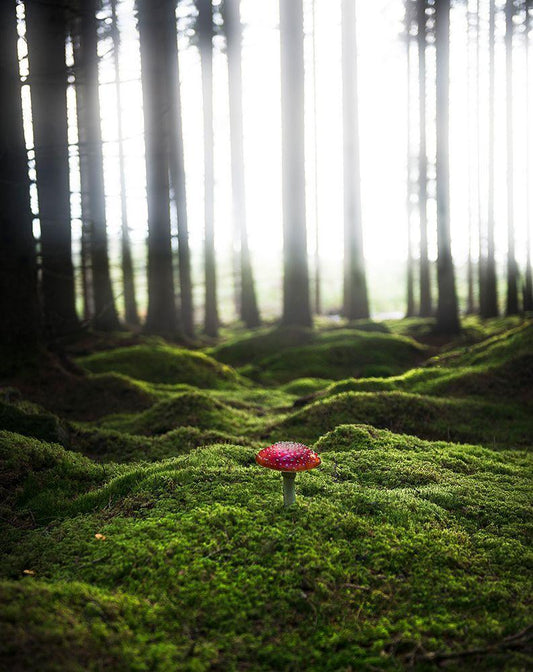Red Mushroom In The Green Forest White Modern Wood Framed Art Print with Double Matting by Lindsten, Christian