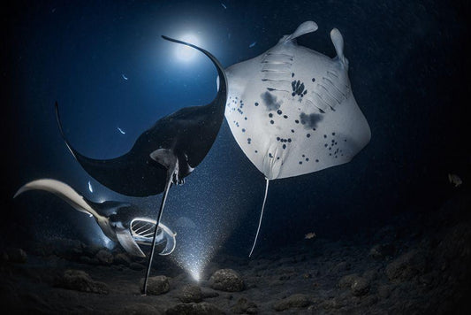 Mantas Night Out White Modern Wood Framed Art Print with Double Matting by Lu, Jennifer