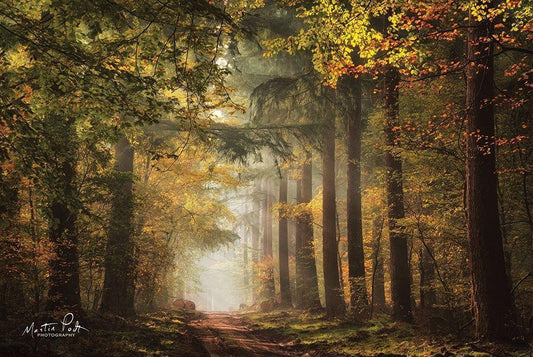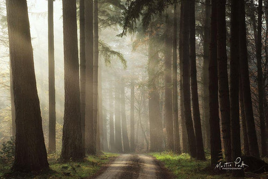 Sun Rays in the Forest I White Modern Wood Framed Art Print with Double Matting by Podt, Martin