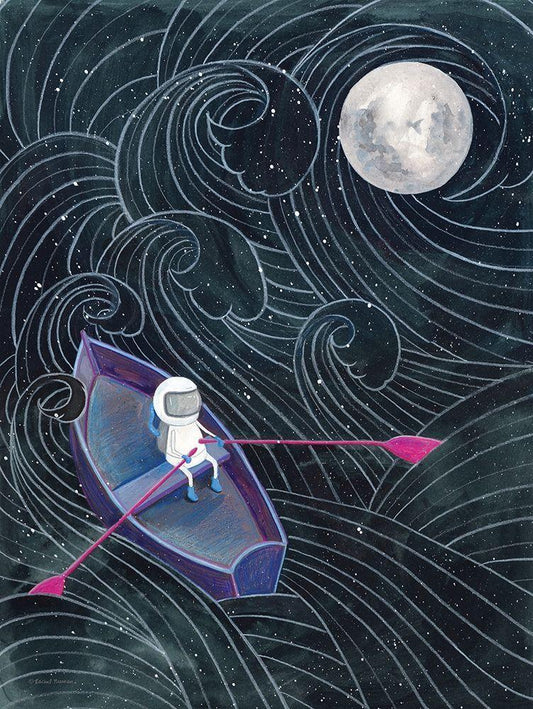 Boat to the Moon White Modern Wood Framed Art Print with Double Matting by Nieman, Rachel