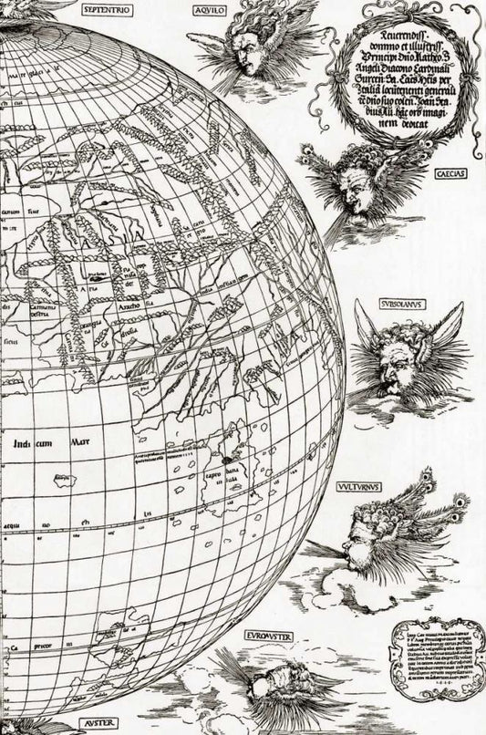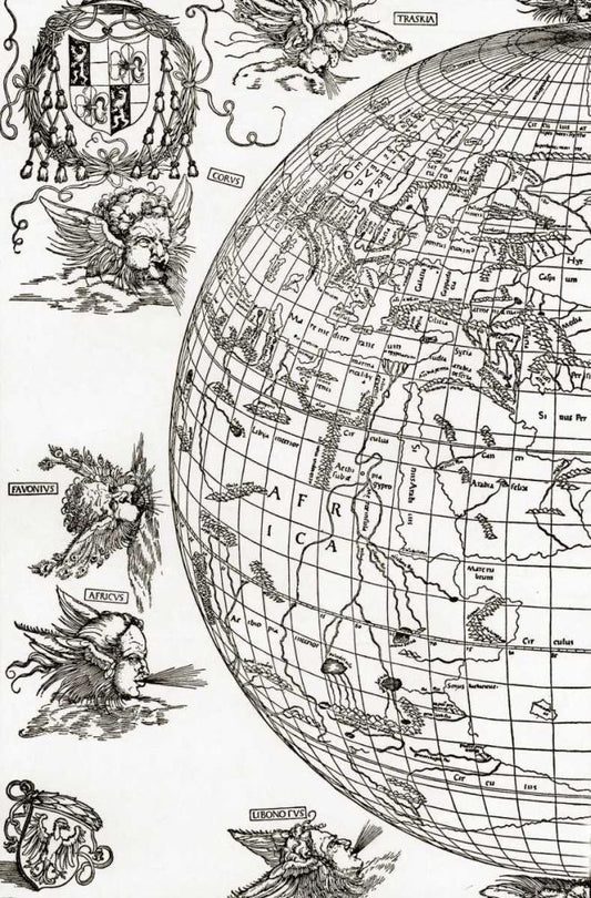 Eastern Hemisphere Of The Terrestial Globe White Modern Wood Framed Art Print with Double Matting by Durer, Albrecht