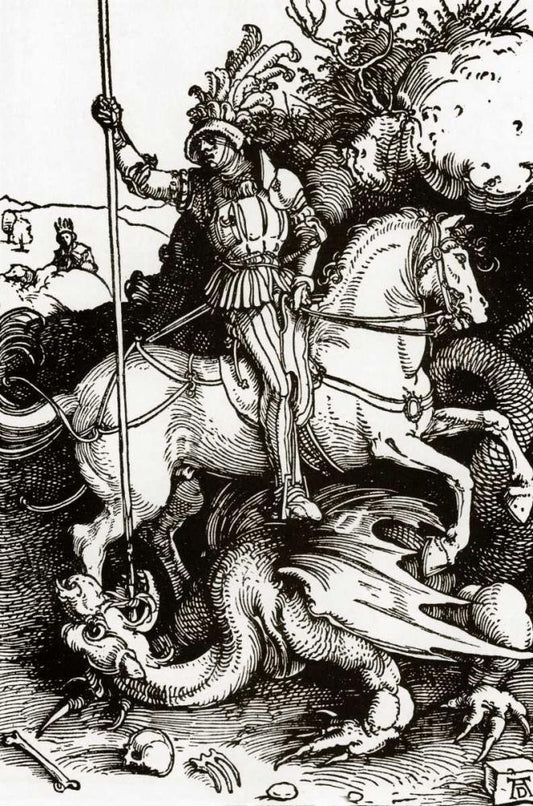 St George White Modern Wood Framed Art Print with Double Matting by Durer, Albrecht