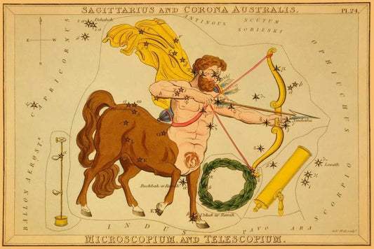 Sagittarius and Corona Australis, Microscopium, and Telescopium, 1825 White Modern Wood Framed Art Print with Double Matting by Aspin, Jehoshaphat