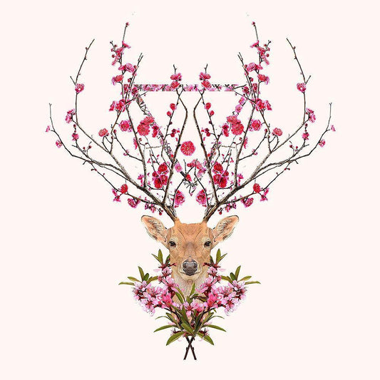 Spring Deer Black Modern Wood Framed Art Print by Farkas, Robert