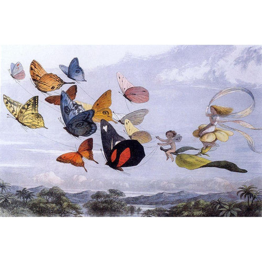 Fairy Butterflies 1 Black Modern Wood Framed Art Print by Vintage Apple Collection
