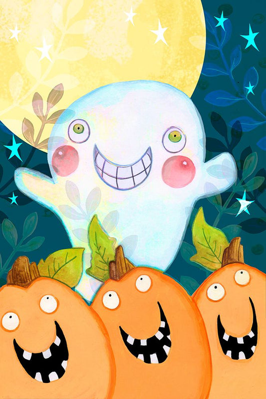 Happy Ghost Black Modern Wood Framed Art Print by Wade, Valarie