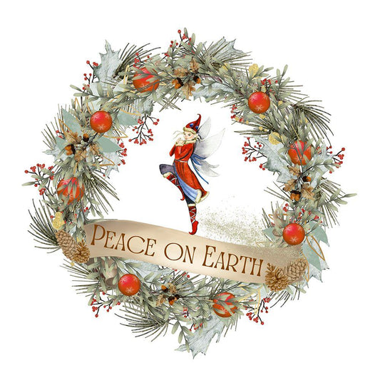 Peace On Earth Wreath Black Modern Wood Framed Art Print by Mitchell, Tina